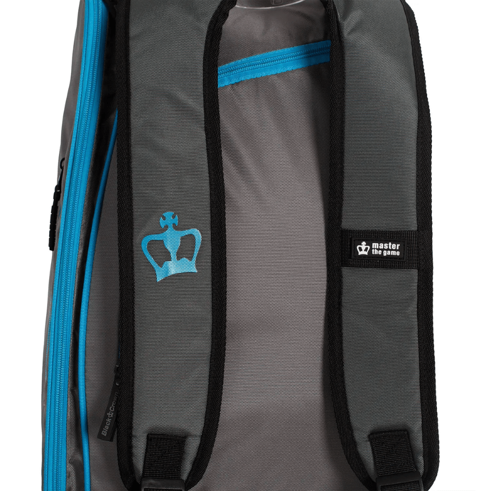 El Paletero Black Crown Ultimate Series V2 Gris/Azul ha sido diseñado para jugadores de pádel que priorizan la comodidad, la ligereza y una organización eficiente sin necesidad de llevar un volumen excesivo.